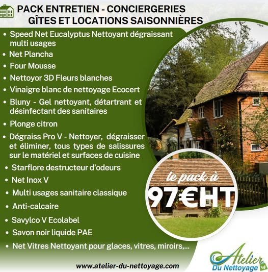 Le Pack Entretien regroupe 15 produits essentiels pour nettoyer votre location efficacement, avec des formules professionnelles et écologiques.